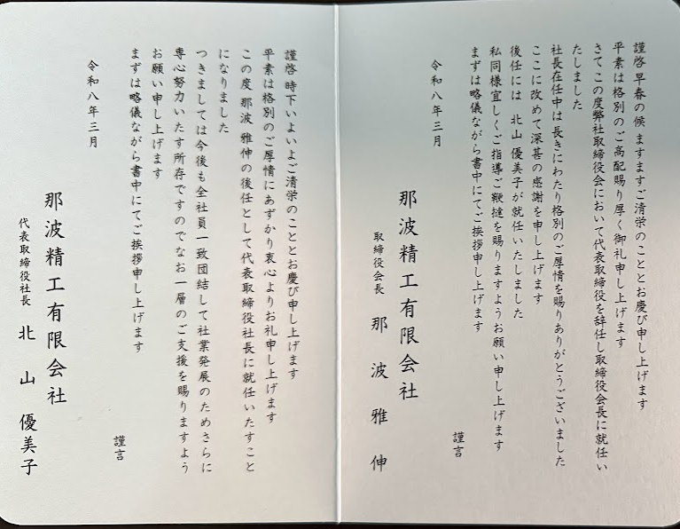 この度 那波雅仲の後任として代表取締役社長に就任いたすことになりました